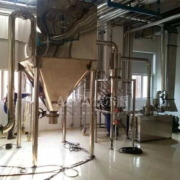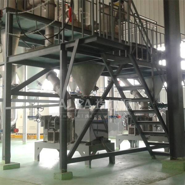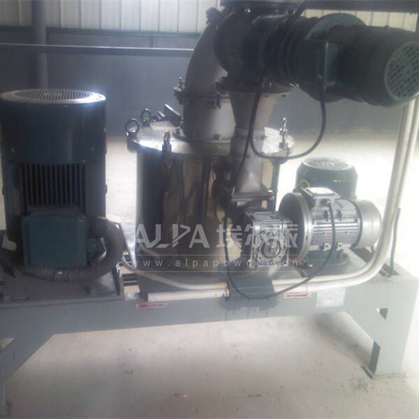 物料由加料系統(tǒng)均勻的送入粉碎室,受到高速旋轉(zhuǎn)的粉碎盤的強(qiáng)烈沖擊,同時受到離心力的作用,與粉碎齒圈發(fā)生碰撞,受到剪切、摩擦、碰撞等多種綜合力的作用,使物料粉碎,被粉碎的物料隨氣流運(yùn)動到分級區(qū),通過變頻調(diào)節(jié)的分級輪,對粗細(xì)物料進(jìn)行分離,符合細(xì)度要求的產(chǎn)品隨氣流進(jìn)入旋風(fēng)收集器和除塵器收集,粗細(xì)料返回分級區(qū)二級粉碎。