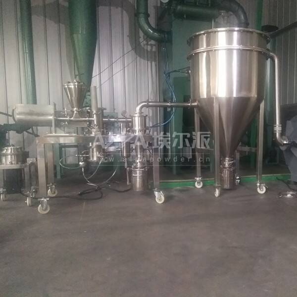 埃爾派三合一實(shí)驗(yàn)室粉碎分級(jí)機(jī)物料通過(guò)自動(dòng)喂料系統(tǒng)對(duì)進(jìn)入氣流粉碎機(jī)(機(jī)械粉碎機(jī))的物料粉碎至合適粒度,通過(guò)高速旋轉(zhuǎn)的分級(jí)輪實(shí)現(xiàn)大小不同的粒度分離,合格的產(chǎn)品進(jìn)入旋風(fēng)收集器收集,粗顆粒返回粉碎區(qū)繼續(xù)粉碎。如果需要把物料單獨(dú)進(jìn)行分級(jí),組合氣流分級(jí)單元,通過(guò)變頻器調(diào)整葉輪轉(zhuǎn)速實(shí)現(xiàn)不同粒度的產(chǎn)品分級(jí)。